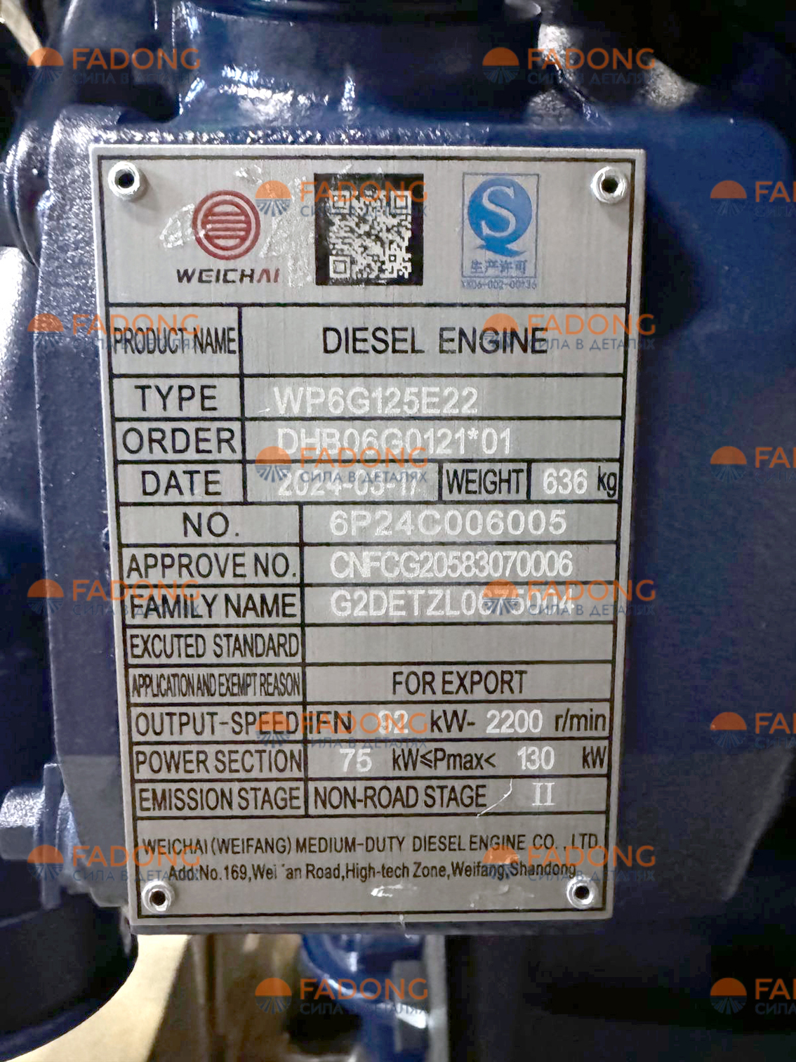 Двигатель в сборе WP6G125E22 / DHB06G0121